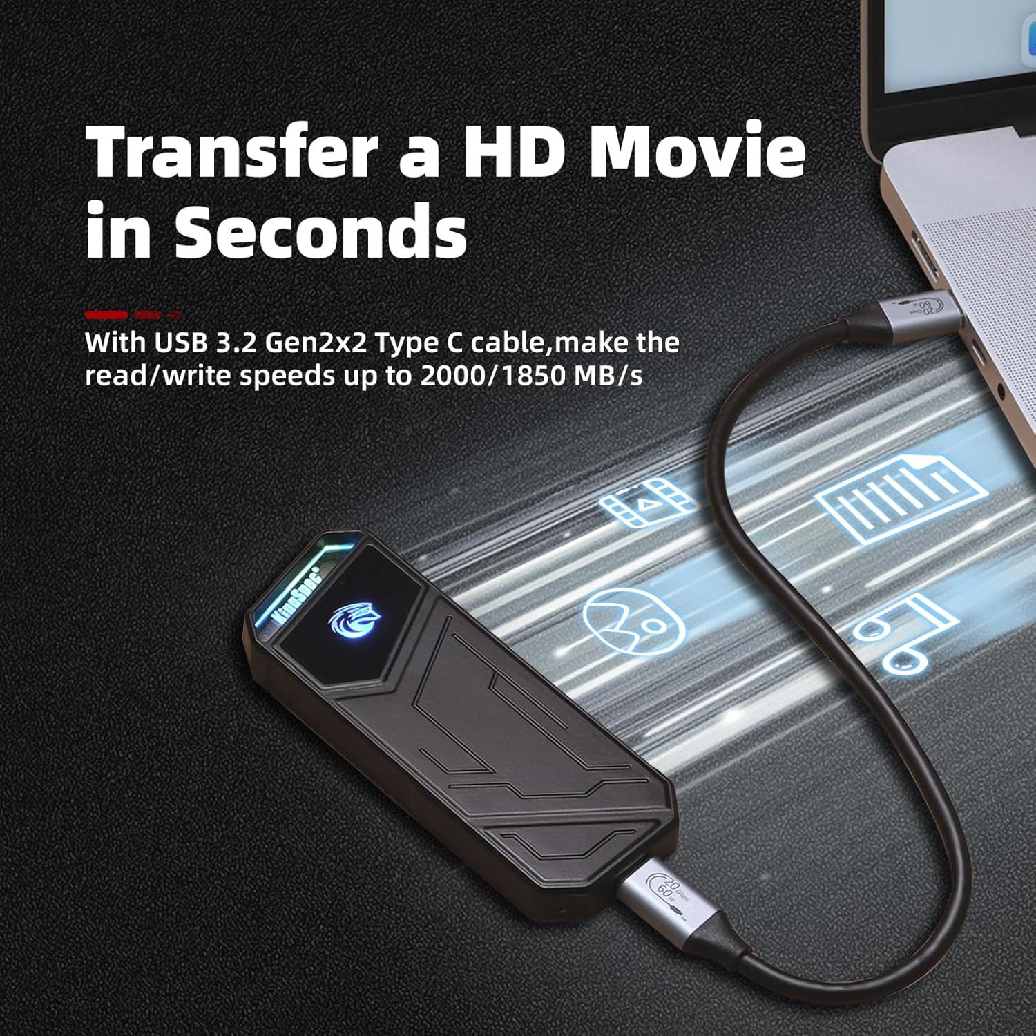 KingSpec Z5 4TB SSD externo portátil hasta 2100 MB/s, funda de aleación de zinc, interfaz USB 3.2 Gen2x2, discos duros de estado sólido